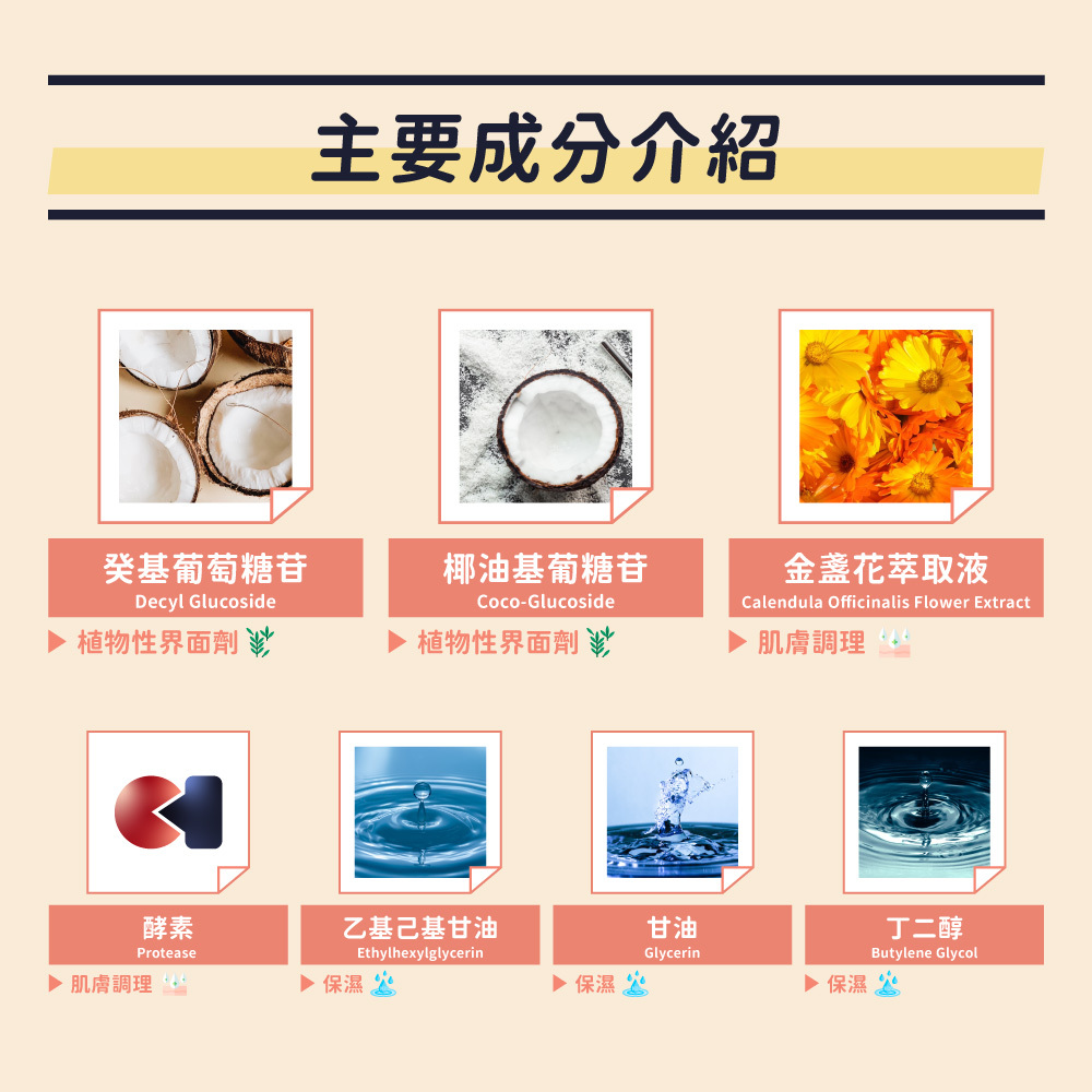 植萃椰油基底 | 金盞花萃取 | 甘油+保濕複方