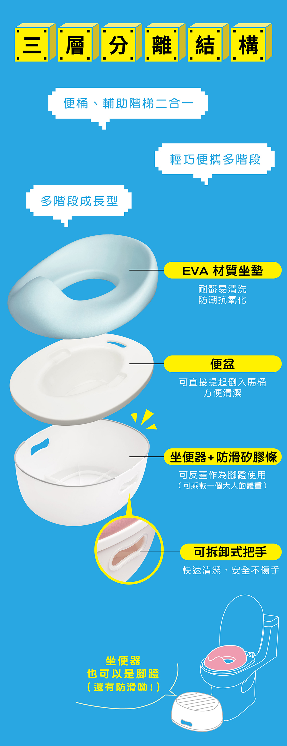 ★「馬桶墊+馬桶座」二合一,符合多階段幼兒需求